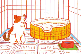 シーツや新聞紙を敷きつめたら、やわらかい布のベッドと飲